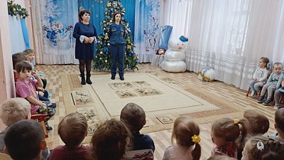 С целью недопущения опасных ситуаций сотрудники ГОиЧС регулярно проводят с детьми и сотрудниками ДОУ профилактические мероприятия. Сегодня Хенова Анастасия Павловна, начальник курсов ГОиЧС, и Наталья Алексеевна Фирсова, специалист государственной инспекции по маломерным судам, провели с ребятами интересную, познавательную беседу по безопасному поведению на воде в зимний период и вручили воспитателям памятки.
